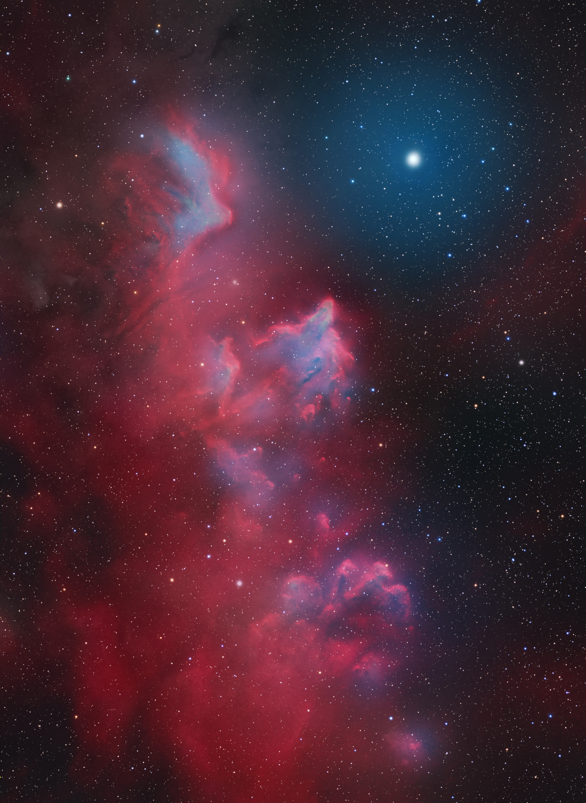 IC 63 es una nebulosa de emisión y reflexión, clasificada como una nebulosa oscura parcialmente iluminada. A veces se la llama el “Fantasma de Casiopea” por su forma.